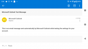 If you have a website and is setting up an email account with Outlook to avoid using Horde, Roundcube or SquirrelMail in your browser, you will likely receive the Microsoft Outlook Test Message a few seconds after setting up for each added account. The sender will show as Microsoft Outlook on your desktop client and Note to Self on your mobile device client.